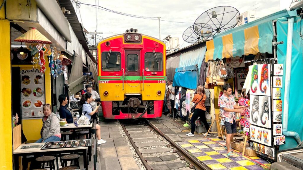 - Observe the train weave its way through the busy Maeklong Railway Market